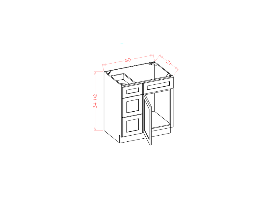 / VANITY COMBO BASE W/DRAWER LEFT 30”W X 34.5”H X 21”D